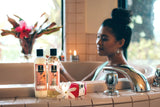 The Story: The Island Essence Vintage line of bath and beauty products was created in 2001 featuring the iconic artwork of the artist Gil (the look has been refreshed in 2019 but all the fragrances and ingredients are the same!). Gil’s graceful artwork and the beautifully fragrant Vintage line celebrate the romance and nostalgia of a bygone era when traveling to the islands meant a long oversea luxury liner voyage or a courageously thrilling trip by air on a Pan Am Clipper. All Vintage fragrances highlight the true paradise of earlier Hawaiian days, when life was slow and easy, swaying with the breeze like the exotic palm trees.
