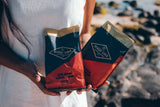 The Coffee: This is a 12oz bag of ground Columbian Excelsio, City Roasts and 10% Kona coffee. This bright morning brew is roasted just down the street from the Island Essence factory in Maui. In the Hawaiian language, "oma" means roast. If you have visited Maui before, you probably have had Maui Oma coffee as they make the proprietary blends for Mama's Fish House, Longhi's, Meriimans and Leoda's, as well as many others. Maui Oma does small batch roasting and uses only the highest quality coffee beans, perfectly suited to a Hawaiian Lifestyle--whether you are at Jaws, overlooking a Haleakala sunrise, or in your home or office, dreaming of Maui.