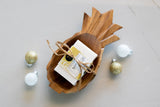 The Dish: Natural wood soap dish in a tropical pineapple shape. This is a perfect addition to your bathroom and kitchen--just add one of our Island Essence handcrafted soaps to complete the island look!