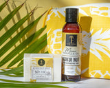 The Collection: A beautiful gift for every occasion, this Hawaiian gift set is from our best-selling Maui Miracle Oils Collection. The Kukui Nut Oil & Soap Gift Collection has your favorite Maui Miracle Oil and Soap Duo in an Oneloa Pineapple Wet/Dry Bag.