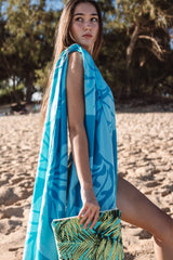 The Sarong: Also known as a pareo in the islands, the sarong is the perfect all-rounder: dress, skirt, swimsuit cover, towel, picnic blanket, turban, you name it! The blue bird of paradise pareo is a stunning tropical design, ready to add a Hawaiian flair to your look. Easy to pack, Standard size, approx. 70"x45". 100% rayon.