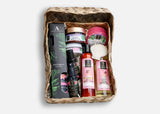 The Gift: This beautiful premium collection includes the Maui Nui Plumeria & Gardenia Reed Diffuser, Upcountry Plumeria Body Butter, Loofah Soap, Body Polish, and Vintage Plumeria Premium Oil and Lotion, as well as a Plumeria Hand Spray and Hand Lotion. All tropical goodies are full-sized and presented in a traditional Hawaiian Lauhala gift basket. This is truly the most pampering gift for anyone who loves the sweet and floral fragrance of plumeria! *Body butter lids are now black.