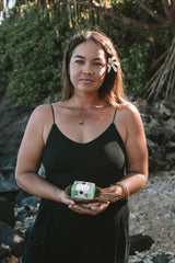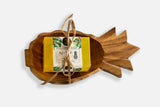 The Dish: Natural wood soap dish in a tropical pineapple shape. This is a perfect addition to your bathroom and kitchen--just add one of our Island Essence handcrafted soaps to complete the island look!